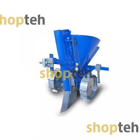 Однорядная цепная картофелесажалка КСМ-2 EXPERT с бункером для внесения минеральных удобрений предназначена для механизации посадки картофеля и одновременного внесения удобрений. Агрегатируется с мотоблоками и мототракторами мощностью от 6 л.с.