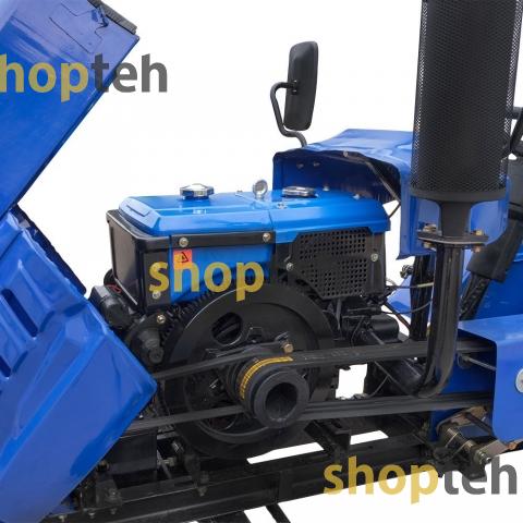 Дизельный силовой агрегат мощностью 16 лошадиных сил дополнен механической восьмиступенчатой коробкой передач. Такая комбинация двигателя и трансмиссии позволяет обрабатывать землю в хорошем темпе, а множество передач не даст трактору застрять в грязи благодаря удачно подобранным передаточным числам.