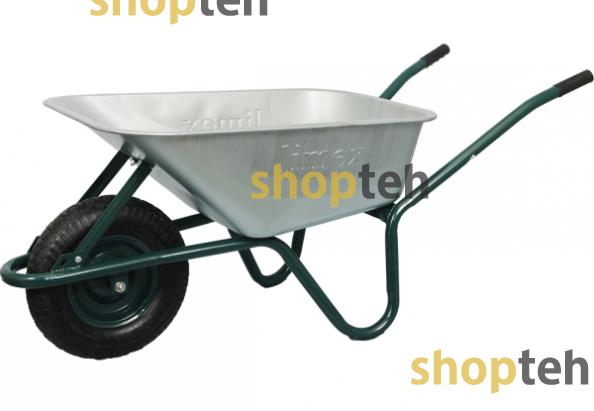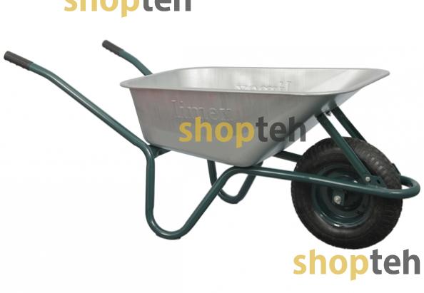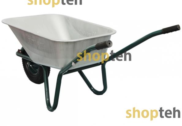 Цельная оцинкованная рама выдерживает вес до 160 кг. Объемный кузов вмещает до 90 л содержимого, а пневматическое колесо беспрепятственно перемещается даже по неровной поверхности.