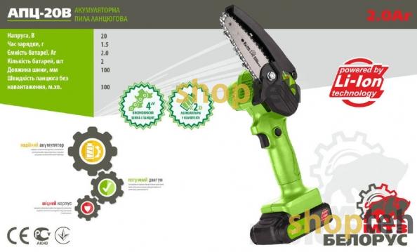 Пила цепная аккумуляторная Белорус АПЦ-20В -это новая мини-модель аккумуляторной пилы от белорусской фирмы Белорус. Оптимальный вариант для использования при обрезке деревьев и заготовки дров небольшого диаметра.
