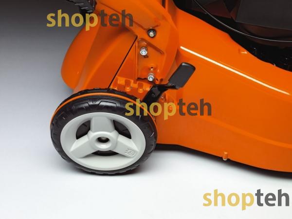 - Три режима стрижки и выброса. Сбор скошенной травы в бункер, боковой выброс, или мульчирование.