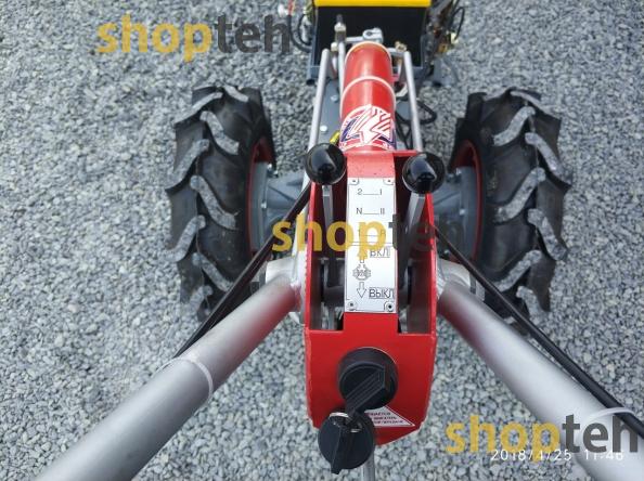 На мотоблок установлены колеса размером 6.00-12 с шевронным рисунком протектора, чем обеспечивается высокая проходимость. Ширина колеи мотоблока может изменяться. Мотоблок может агрегатироваться широким списком навесного оборудования: плуг, окучник, борона, рыхлитель, комплект для посадки и уборки картофеля, тележка, культиватор фрезерный, косилка и др.